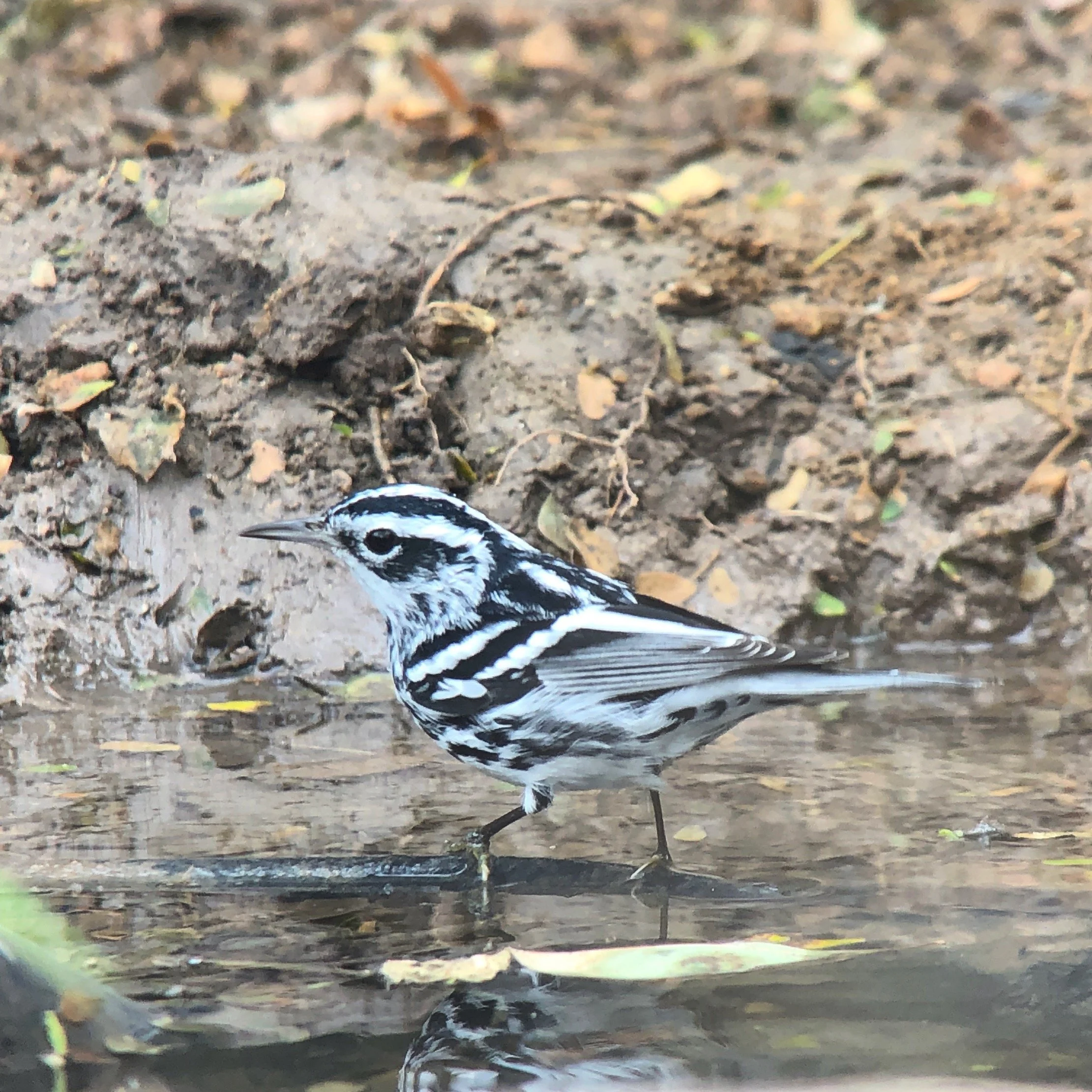 Black-and-white warbler enjoying some shallow water at a Rio Grande Valley Texas birding hotspot.