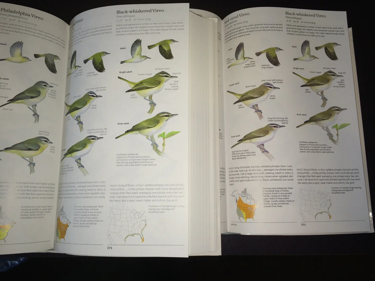 Some greens were corrected as well, here is a vireo comparison page. First printing on the left, second printing on the right.
