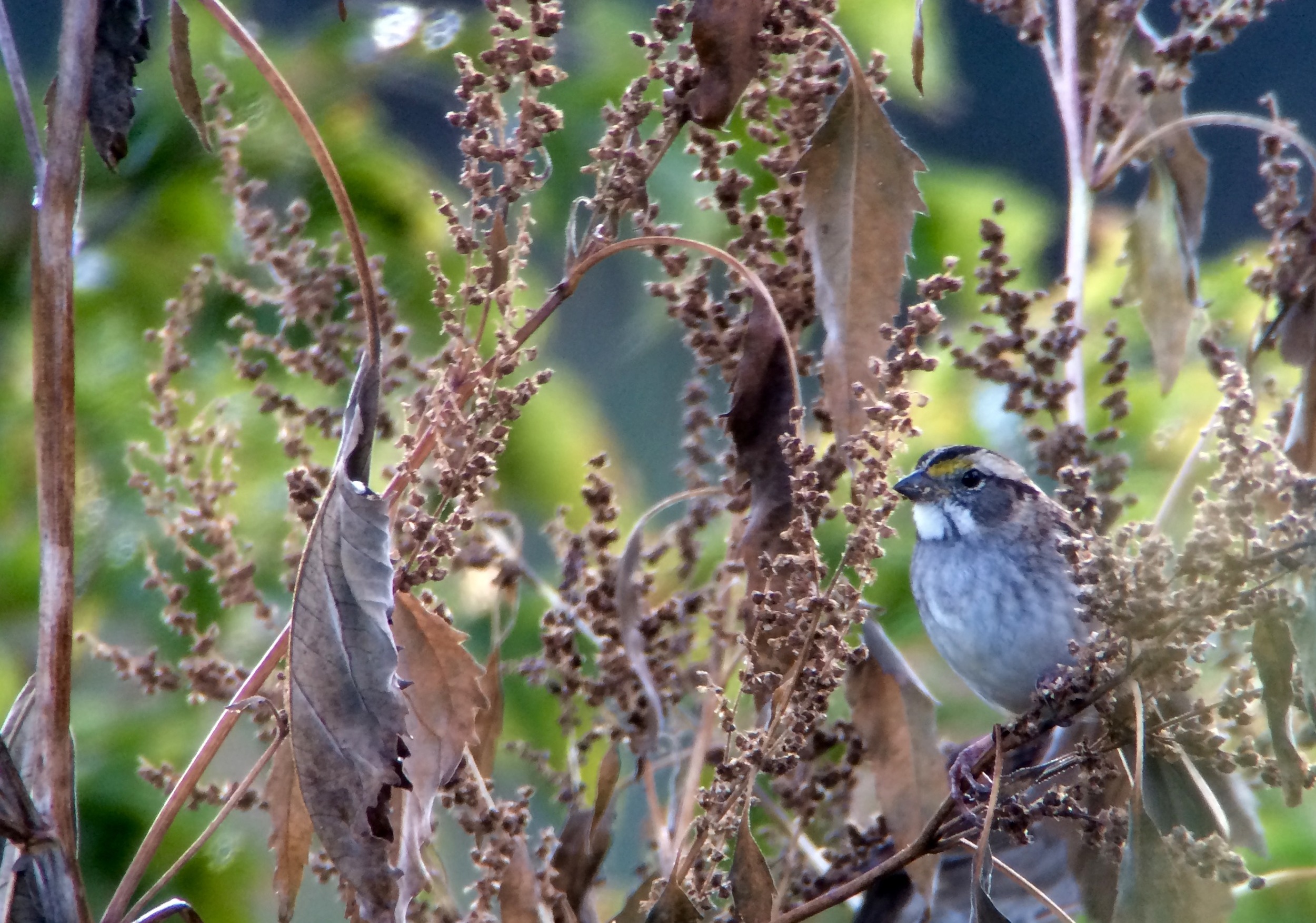 One of the hundreds of white-throated sparrows lurking about in my patch today.