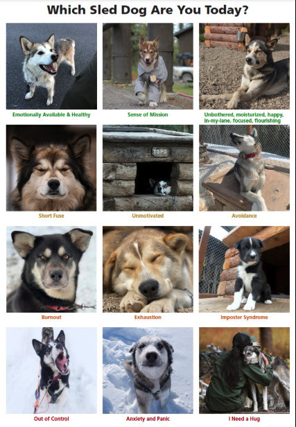 Sled dog mood poster used for staff gathering and online.